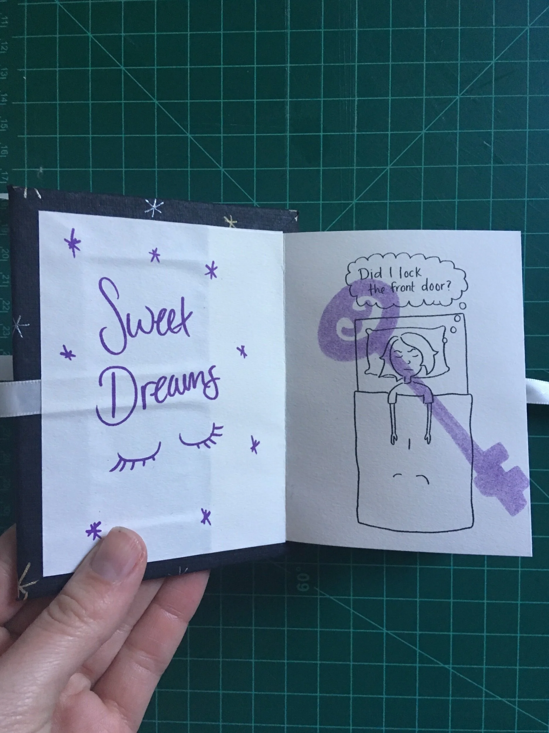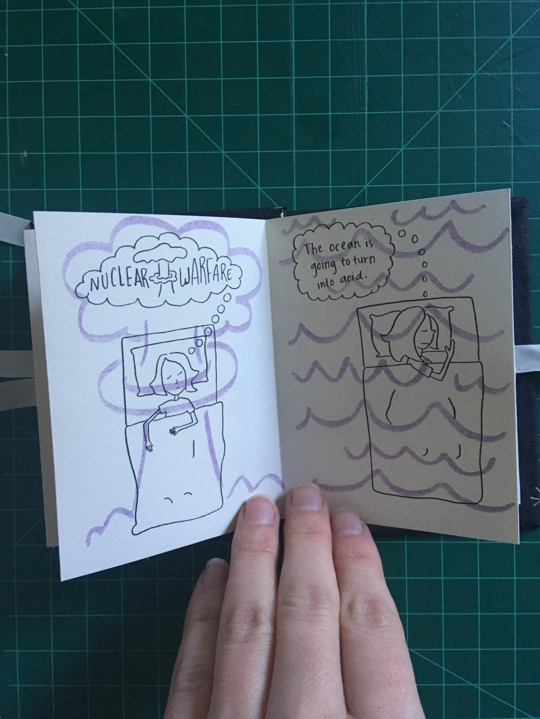 I’ve been working on a zine/mini book in fits and starts over the past year or so about anxious thoughts that used to keep me awake at night. Taking this long to collect, ink, riso print, and book bind this project has for the most part been agonizing - an unfinished project that haunted me and begged to be let go. However in the past months as the coronavirus spreads I’ve found a lot of catharsis in sitting with worries that linger and build upon each other.